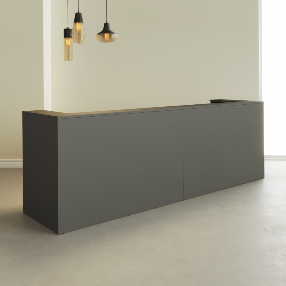 - Tampo superior em melamina de 19 mm de espessura e rebordos exteriores em ABS de 2 mm de espessura aplicados com cola termofusível e arestas arredondadas