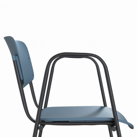 - O encosto e o assento são unidos por 2 tubos ovais em aço laminado a frio de 30 x 15 mm.