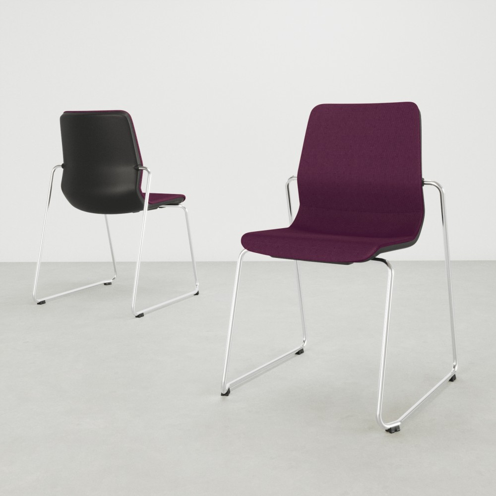 - Armação com forma de patim em tubo redondo de aço laminado a frio de Ø15 mm, com 1,5 mm de espessura, reforçada com uma placa de aço estampado de 2,5 mm de espessura.