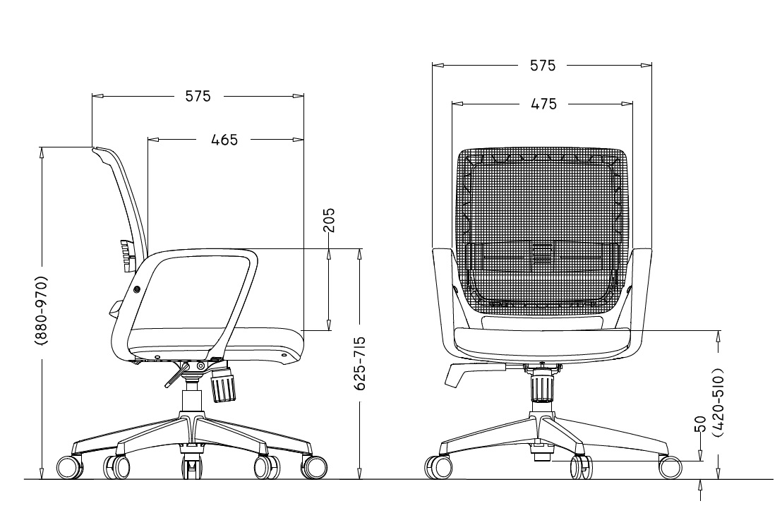 - Encosto em rede respirável e ultrarresistente em poliéster preto que permite um adequado apoio das costas sem deformações.