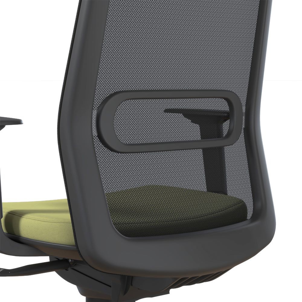 - Encosto de rede preta em poliéster com um pré-aro em polipropileno e 20% de fibra de vidro.
