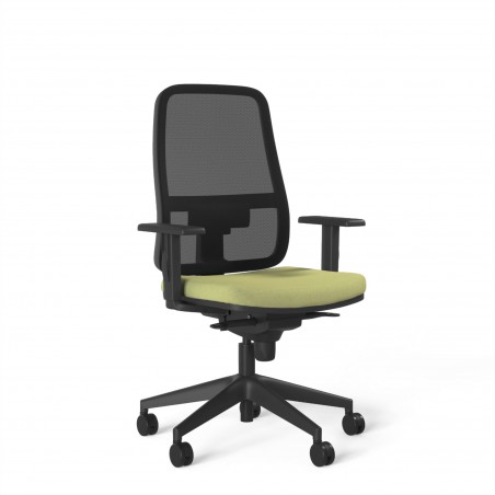 - Encosto de rede-espuma preta em poliéster com um pré-aro em polipropileno (70% reciclado) de 5 mm de espessura.