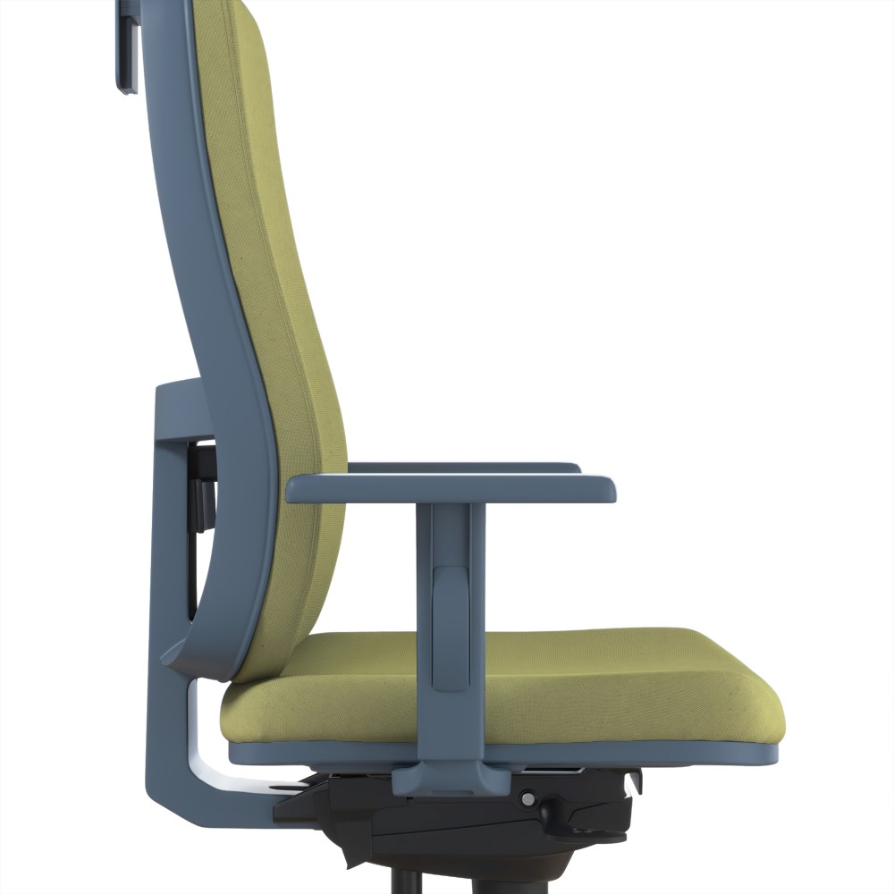 - Ajuste em altura: ativado por meio de um botão na parte exterior do braço (percurso de 8 cm).